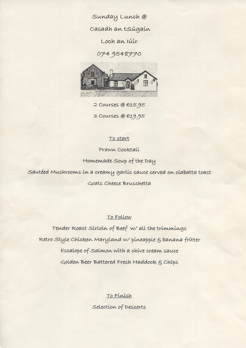 Sunday Lunch Menu